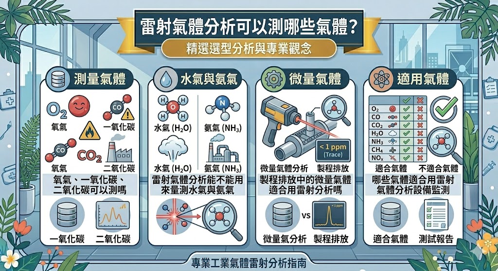 最常見的誤區,就是以為所有氣體都能直接用雷射量。實際上仍要看吸收特性、量測路徑與設備配置。